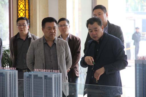考察团一行听取了山东鹊华集团董事长滕善明对项目的介绍,观看了项目规划沙盘,察看了项目施工现场。